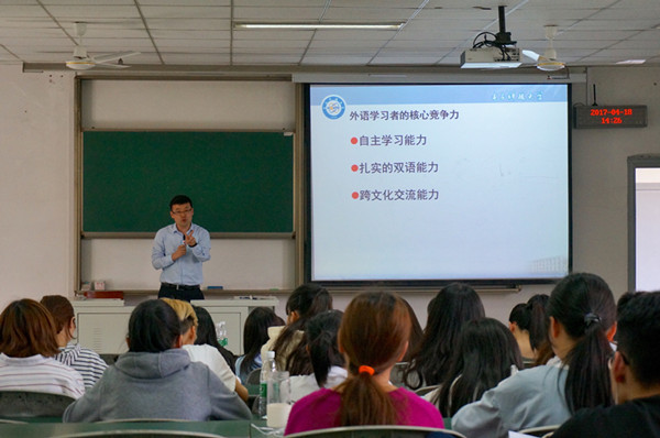【本网讯】4月18日下午,电子科技大学外国语学院副院长胡杰辉教授应邀到乐动参加“2017国际人才英语考试(ETIC)”宣讲活动,并作了题为《打造外语学习者的核心竞争力》的专题讲座。