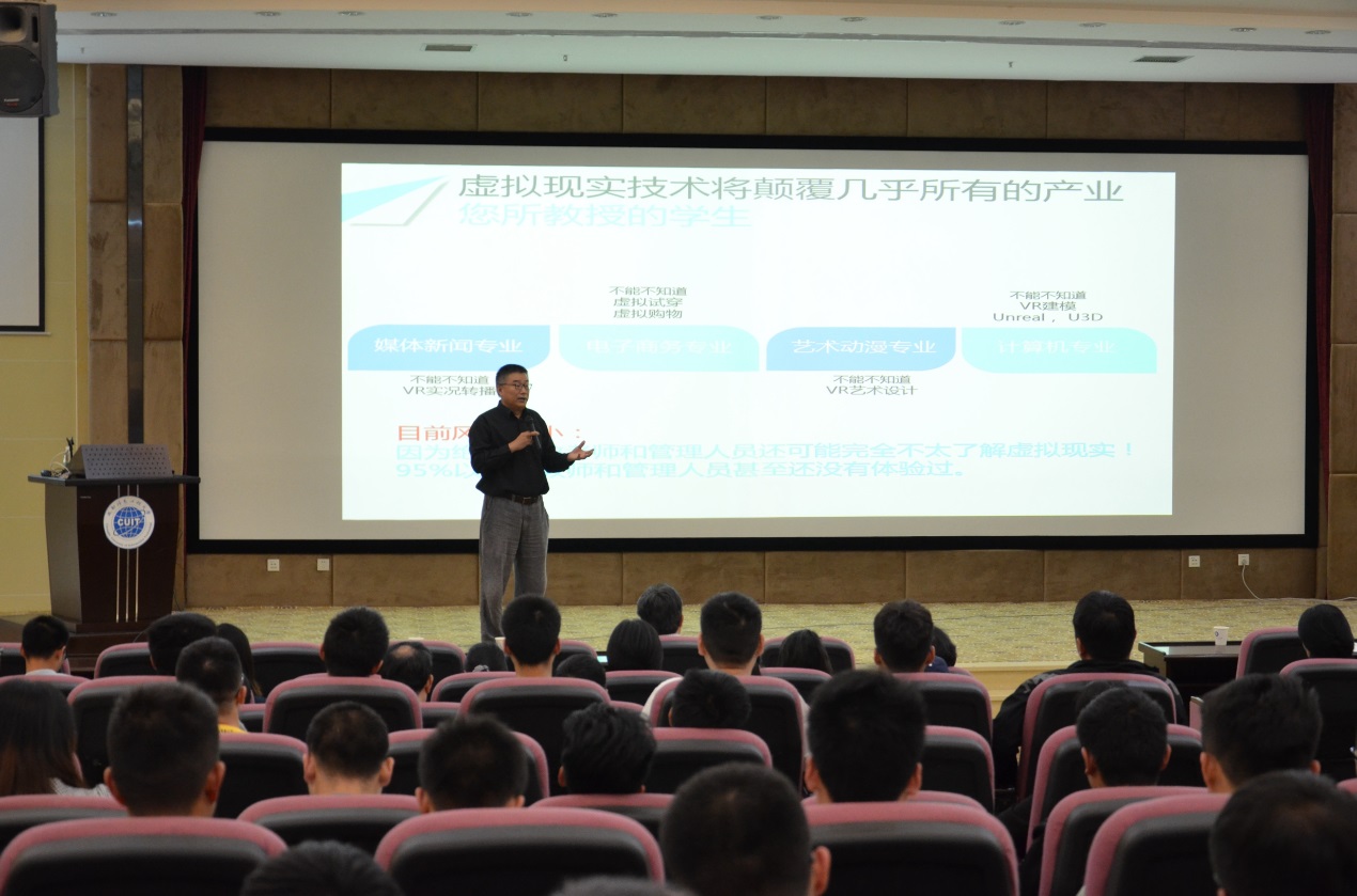 孙伟从“G20峰会”上习近平总书记的发言延伸开来,详细介绍了虚拟现实技术的发展前景。他提到,虚拟现实技术将颠覆几乎所有产业,其中包括医疗行业、动漫及艺术设计行业、房地产行业(售楼、装修、建筑设计)等。“不闻不若闻之,闻之不若见之,见之不若知之,知之不若行之,学至于行而止矣”,孙伟教授借用古语阐释了虚拟现实应用于教育的哲学基础,并说明虚拟现实教育将成为2017年的一个时代特征。