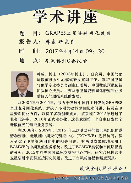 来源:大气科学学院 作者:胡培日期:2017-04-12 审核:新闻中心 点击: