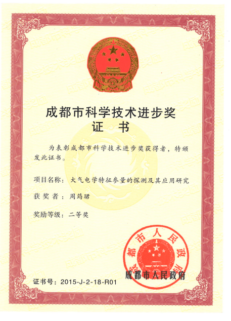 【本网讯】近日,2015年成都市科学技术进步奖评选结果公布,由乐动大气科学学院周筠珺教授牵头,西南空管局等单位参与完成《大气电学特征参量的探测及其应用研究》成果,获得2015年成都市科学技术进步奖二等奖。