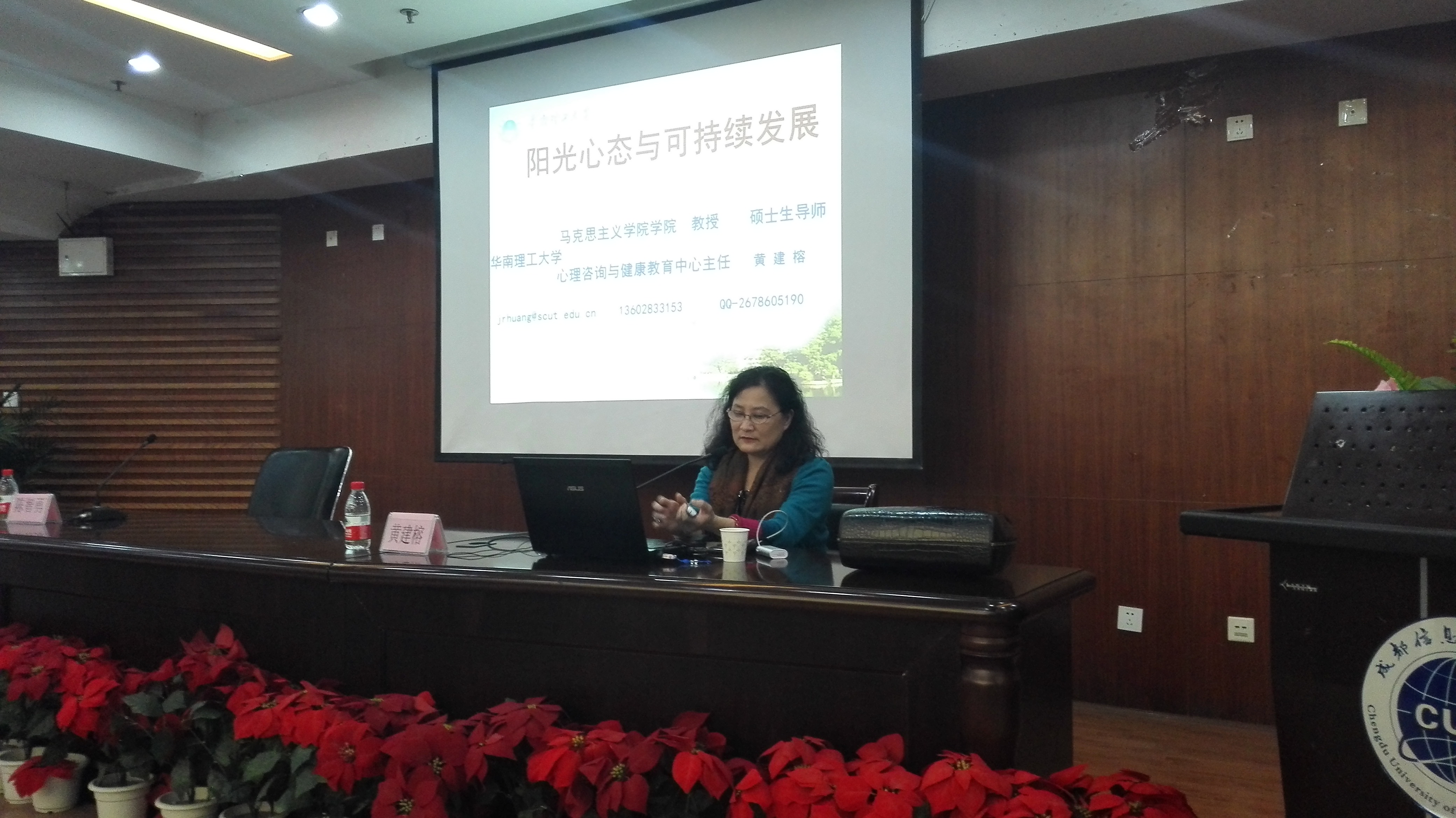 黄建榕教授以阳光心态与可持续发展为主线,以大学生压力管理为主轴,从压力管理与身心健康、心态与绩效、心态与心智——生活幸福感的基础三个方面切入,通过丰富详实的案例、科学严谨的数据、风趣幽默的语言,将压力对人身心的影响,如何通过时间管理和情绪管理来缓解压力,良好的心态与个人可持续发展的重要关系,以及大学生如何保持阳光心态做了淋漓尽致的阐述。讲座过程中黄教授注重与学生的互动,会场不时传来同学们会心的笑声和热烈的掌声,带给了大家心灵的触动和反思,让大家受益匪浅。