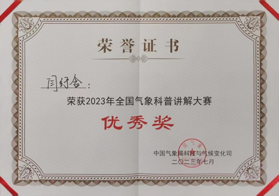【本网讯】7月10日至11日,由中国气象局主办,中国气象学会秘书处、中国气象局气象宣传与科普中心(中国气象报社)、云南省气象局承办的以“科技强国 气象万千”为主题的2023年全国气象科普讲解大赛在云南大学成功举办。来自中国气象局直属单位、各省(自治区、直辖市)气象局以及相关高校48支代表队的128名选手进入决赛,呈现了一场精彩绝伦的科普视听盛宴。最终,乐动大气科学学院闫纡含同学和冯士哲同学荣获优秀奖,乐动荣获大学优秀组织奖。