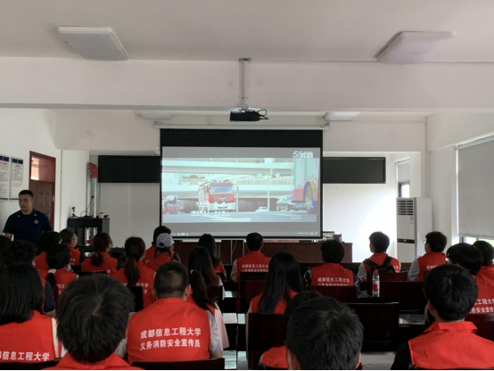 现场讲解及体验活动后,全体师生观看了《119对你说》火灾警示教育电影,教官结合视频播放过程,讲解了应对不同类型火灾的扑救方式及逃生技巧。