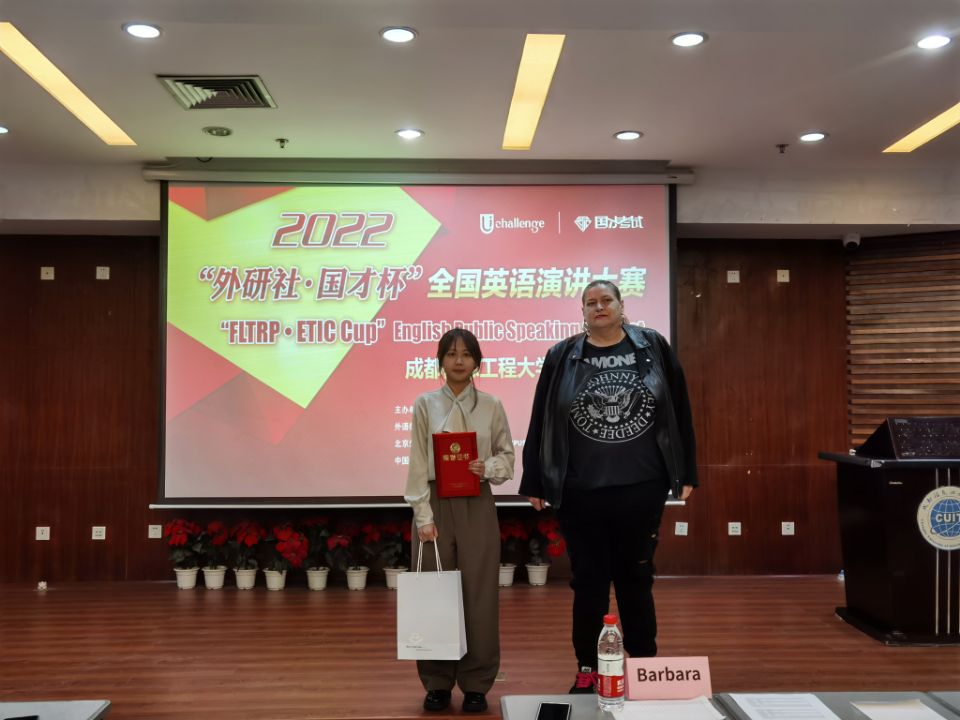 在第二轮比赛中,十位选手根据即兴演讲题目做出了精彩的演讲并回答了提问官的问题。在闭幕式环节,外教Barbara致辞,向所有选手表示祝贺,充分肯定了同学们在英语演讲中展现出的自信和热情,给选手们提出了中肯的评价和建议,希望更多的同学能够踊跃参加类似的比赛。