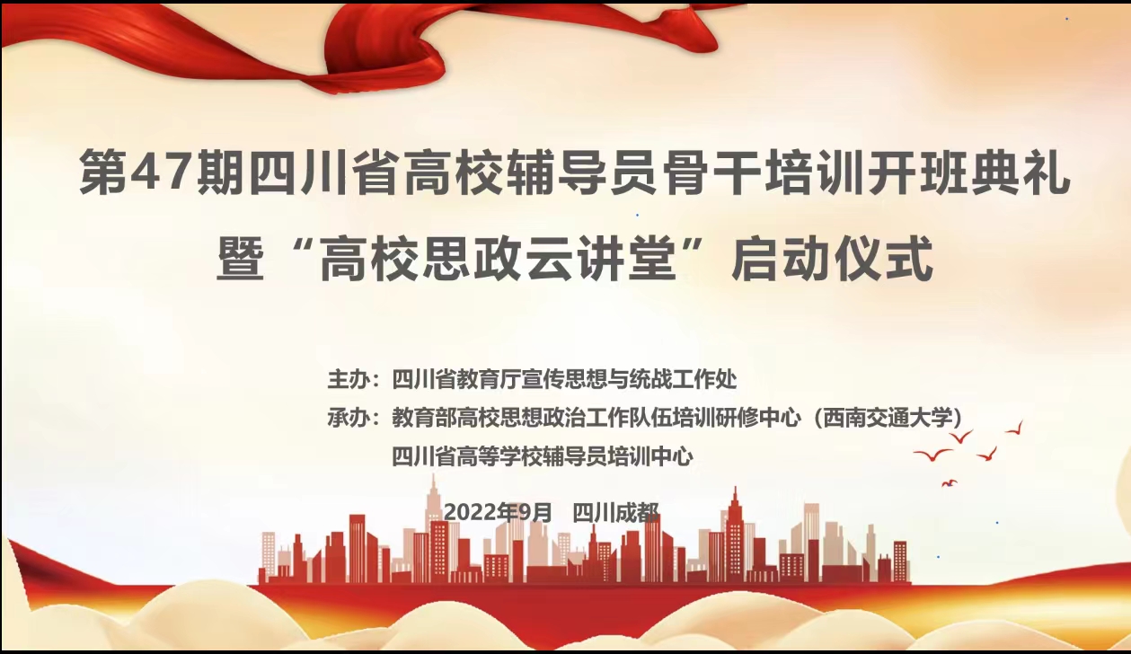 【本网讯】为喜迎党的二十大,进一步提升我省高校思想政治工作队伍的工作素养和能力,切实培养一支高质量、高水准的高校思政工作骨干队伍,9月29日至30日,由四川省教育厅宣传思想与统战工作处主办,教育部高校思想政治工作队伍培训研修中心(西南交通大学)和四川省高等学校辅导员培训中心承办的“第47期四川省高校辅导员骨干培训”顺利在线开展。来自全省120余所高校240名学工队伍管理干部或专职辅导员代表参与培训,乐动学生工作部少数民族专职辅导员阿尔祖古丽·阿卜来提和电子工程学院辅导员苏露参加了此次培训。