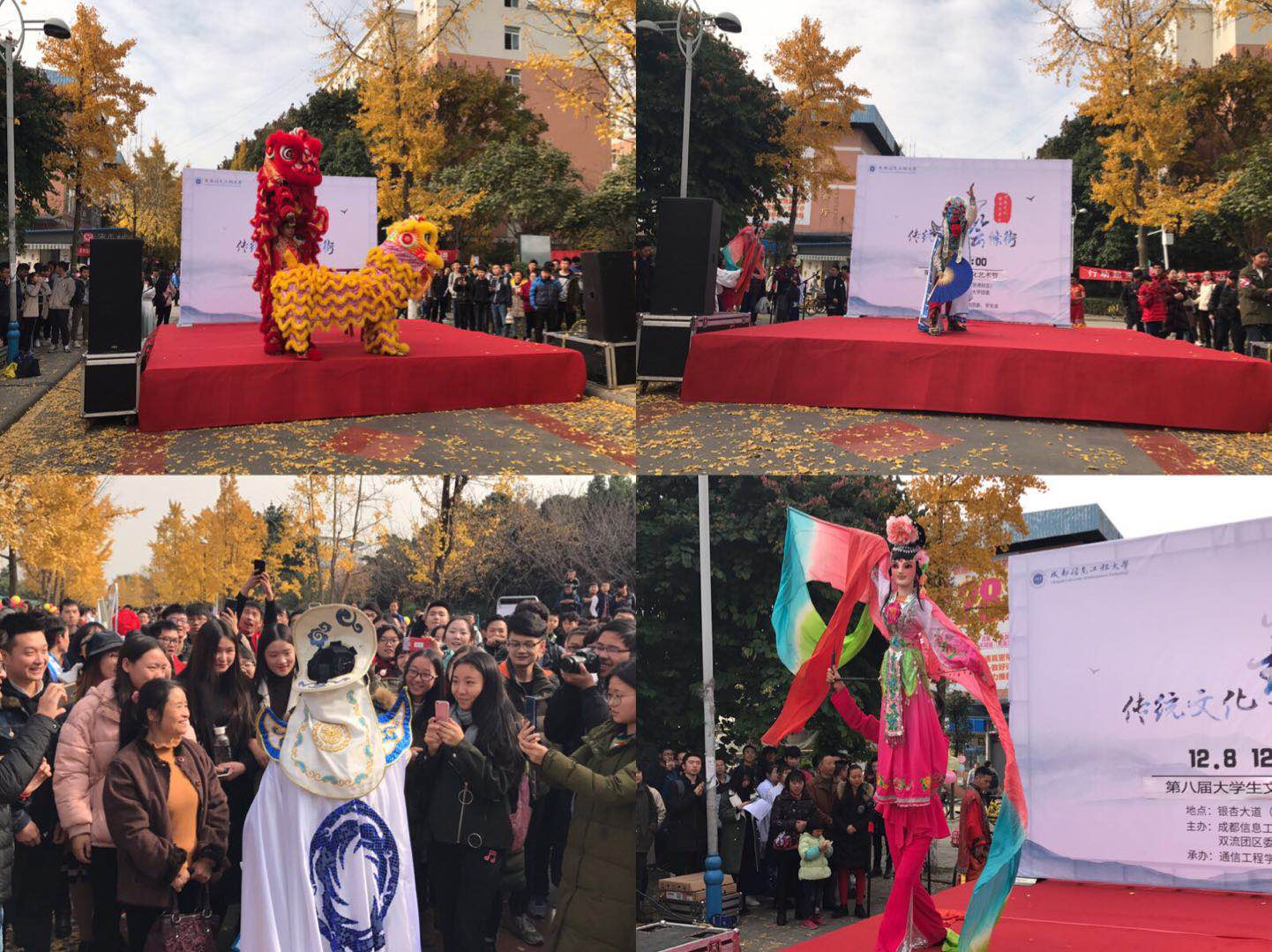 【本网讯】12月8日中午,第八届大学生文化艺术节传统文化“艺”条街活动在乐动航空港校区银杏大道举行。本次活动由学校团委、双流团区委主办,通信工程学院承办。校团委负责人,部分学院院长、总支书记(副书记)、团委书记,学校部分教职工与近2000名成信学子参加了活动。