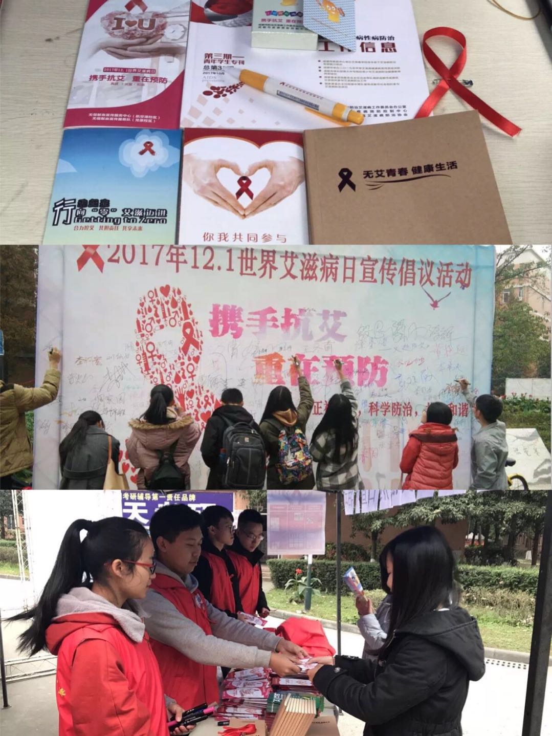 【本网讯】12月1日是第30个“世界艾滋病日”。当天上午,学校分别在航空港和龙泉校区举行2017年世界艾滋病日“携手防艾,重在预防”主题宣传倡议活动。校团委、校卫生防疫保健中心有关负责人以及乐动志愿者参加了活动。