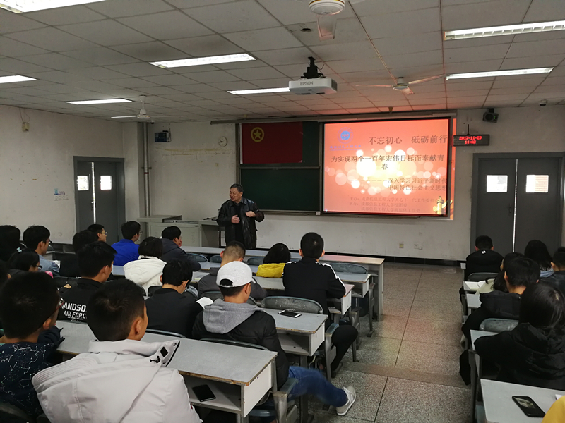 王臣勇老师从十九大概况、习近平总书记讲话要点、关键词学习、放飞青春梦想书写人生华章四个部分向同学们解读了十九大精神和当代青年学子所肩负的历史使命:青年兴则国家兴,青年强则国家强,青年一代有理想有担当,则国家有未来。青年人要志存高远,脚踏实地,做时代的弄潮儿,在实现中国梦的实践中,放飞青春梦想。