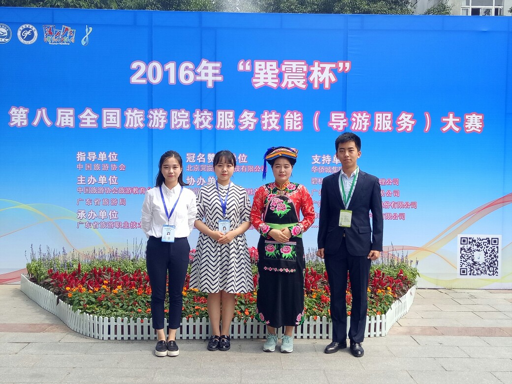 【本网讯】5月12日-14日,乐动管理学院旅游管理专业杨丽娟带队到广州参加了中国旅游协会举办的2016年“巽震杯”第八届全国旅游院校服务技能(导游服务)大赛,取得了高校英文组二等奖、最佳才艺奖的佳绩。