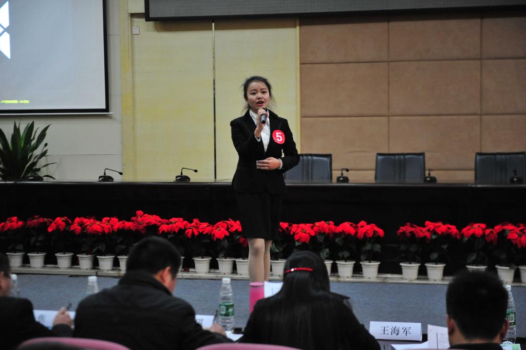 经过简历筛选,初赛笔试,复赛面试层层选拔,来自不同学院的12名选手脱颖而出入围决赛。“魅力登场”环节,选手们就自己的应聘职位来了一次实时演练——天气播报、播音主持、歌唱,各位选手竞相展示自己的绝活。“燃眉之急”环节,选手们就随机抽取的面试题即时作答,选手们睿智的思维、精彩的回答给评委留下了深刻的印象。进入“无领导小组讨论”环节,12名选手随机分为三组,选手们在极短的时间内就完成了计时员、记录员等工作的分配,并针对问题展开热烈讨论,最后得出自己小组的结论,展示了极强的个人素质和职场素养。