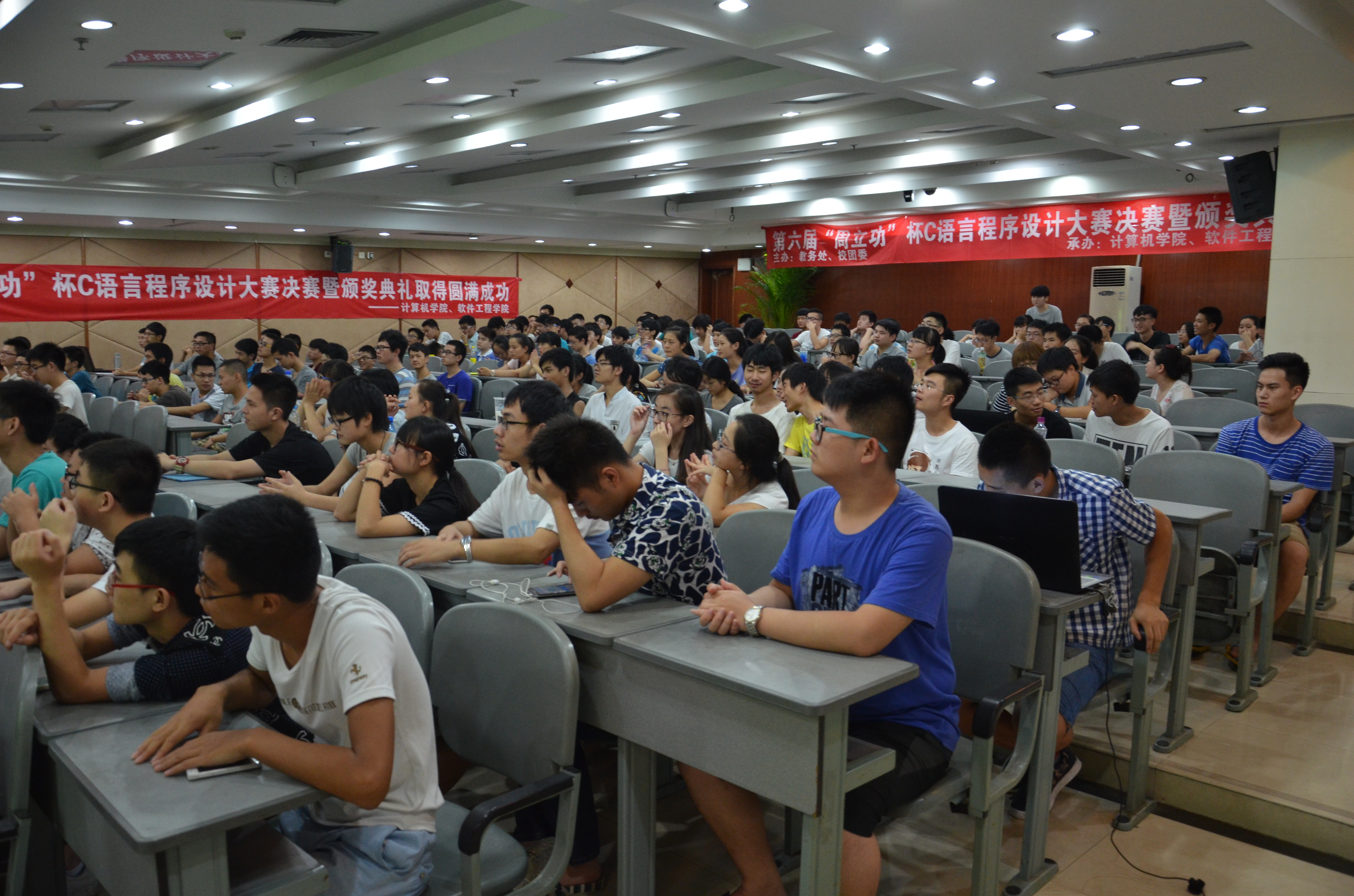 【本网讯】6月29日晚,由教务处、校团委主办,计算机学院与软件工程学院承办,广州周立功单片机有限公司赞助的第六届“周立功”杯C语言程序设计大赛决赛暨颁奖典礼在学术报告厅成功举办。担任本次大赛的嘉宾及评委有来自计算机学院的何嘉院长,校团委的历威成老师以及来自计算机学院和软件工程学院的各位老师。