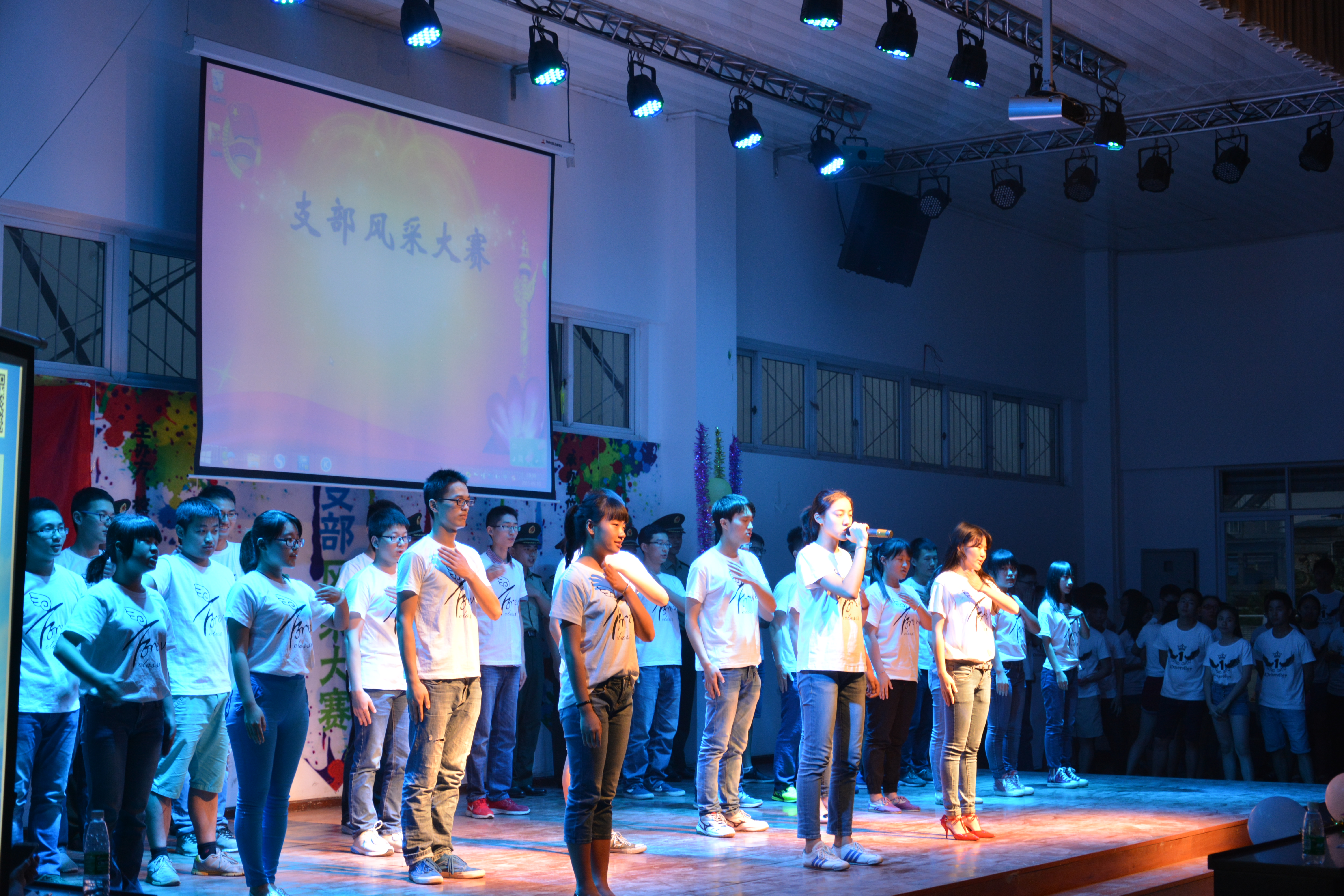 4月27日、5月10日,决赛分别在学校龙泉校区和航空港校区举行。在风采展示环节中,各团支部结合各自专业特色、班级文化为现场观众带来精彩的表演。竹竿舞、情景剧、手语歌、交谊舞、轮滑、魔术及歌舞展示等丰富了大家的视野。特别是汉语国际教育2014级1班团支部结合自身专业特点,选取了《在水一方》作为班级风采展示的环节,以诗歌诵读、歌唱、情景剧的形式并辅以民国时期大学生校服展现班级文化,赢得了在场的阵阵掌声。应用数学2014级1班团支部则以生活中最为常见的数学符号,通过专业射灯下的白手套手势动作,为同学们带来了一场美轮美奂的数学盛宴,简单的加减乘除、坐标抛物线等等,将各种数学元素融入班级文化,在展示自己支部风采的同时,激发了同学们对数学的学习激情。微信墙上,同学们的热情话语、加油助威、呐喊声不断,尤其在抽奖环节,现场高潮此起彼伏。