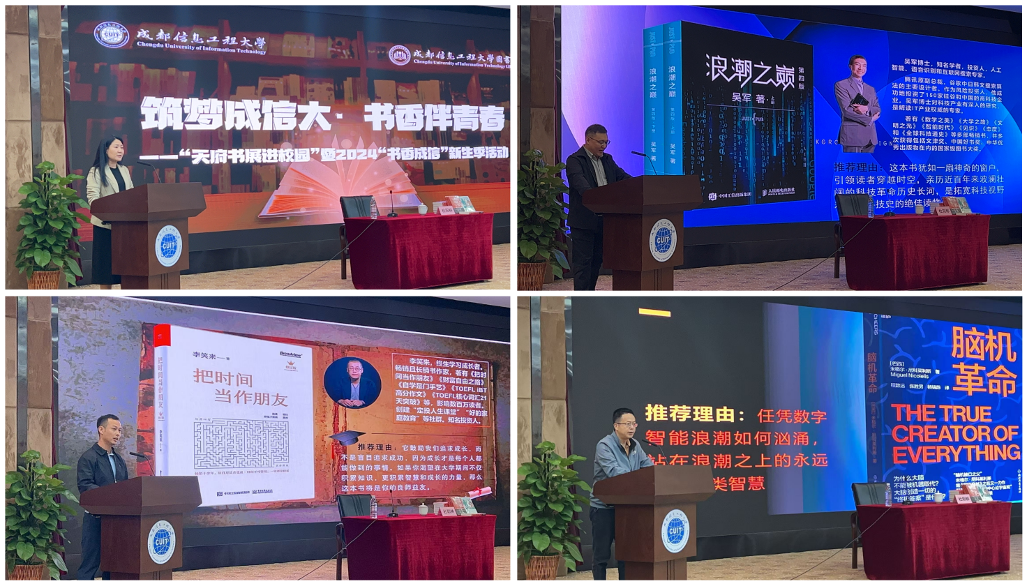 学校图书馆充分利用“天府书展进校园”活动契机,将书展与校园文化建设和阅读推广活动有机融合,深化“书香成信”品牌活动内涵,设计并开展了2024“书香成信”之“筑梦成信大・书香伴青春”新生季主题系列活动。主要包括“书香校园·阅享天府”书展、“名家天府行”作家讲座、“你选书 我买单”PDA(读者决策驱动)线下购书、“共建书香校园”新生荐书、“启航知识之旅:书海寻宝”等活动,活动内容丰富多彩,吸引了众多师生参与,在校园秋色中呈现出满地金黄、一卷书香的美好场景。