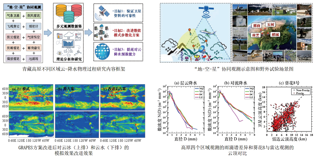 对青藏高原云降水物理和水循环过程认知的缺乏是限制高原及下游地区天气预报准确性的主要原因之一。在科技部重点研发专项-重大自然灾害监测预警与防范课题的支持下,实验室于2019-2021年在高原不同区域开展了云降水“地基空基星基"协同观测试验,目标是研究高原云降水物理特征和水循环机理,验证卫星资料在该地区的适用性,改进该地区数值模式参数化方案并提高天气模拟和预报水平。
