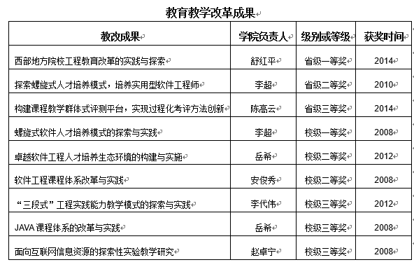 2012年,软件工程专业成为四川省第一批省级专业综合改革试点项目
