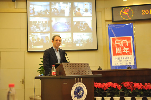 2014年正值中-法建交50周年,今年的OW2国际软件编程比赛获得了法国驻华使馆的支持,成为中法建交50周年官方纪念活动之一。法国驻成都领事馆总领事Olivier VAYSSET先生于15日专程赶到学校祝贺,参加庆祝活动的还有OW2中间件开源国际联盟总裁Cedric THOMAS先生、OW2中国区主管陆国祥先生以及乐动副校长向武、计算机学院院长何嘉、计算机学院副院长吴锡。