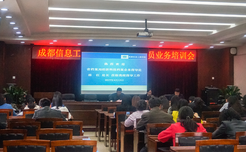 【本网讯】为全面提升学院专兼职档案员档案意识和业务素质,充分发挥兼职档案员的职能作用,促进档案管理工作更好地服务学院建设发展,4月13日,学院在行政楼一会议室举办了全院专兼职档案员业务培训会。省档案局经济科技档案业务指导处林红处长、王晓瑜副处长亲临授课,学院党委常委、副院长向武,全院专兼职档案工作人员50余人参加了培训会。会议由党政办公室副主任李林襁主持。