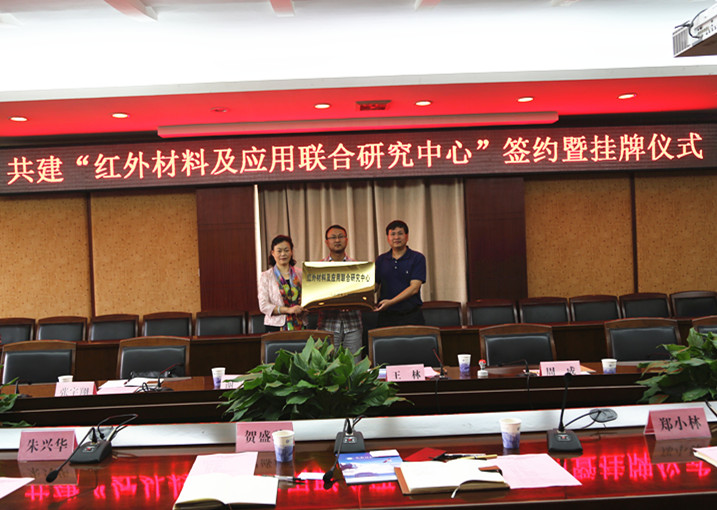 贺盛瑜与王林为红外材料及应用联合研究中心授牌。
