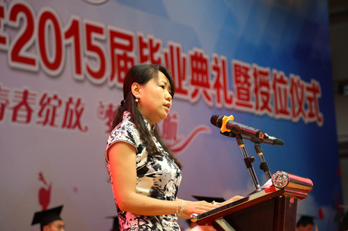 外国语学院教师杨艳、物流学院教师张倩作为教师代表发言。她们对毕业生们圆满完成学业表示祝贺,并祝愿毕业生们能够以此刻为起点,开启人生的另一片辉煌。同时也希望同学们能够时刻怀揣一颗感恩的心、勇敢的心去面对身边的每一个人,去迎接未来人生的每一次挑战。对生活,充满希望;对未来,抱有理想。她们表示,无论同学们身在何方,老师们都愿意分享同学们的成功和快乐,也愿意分担同学们的失意和彷徨。