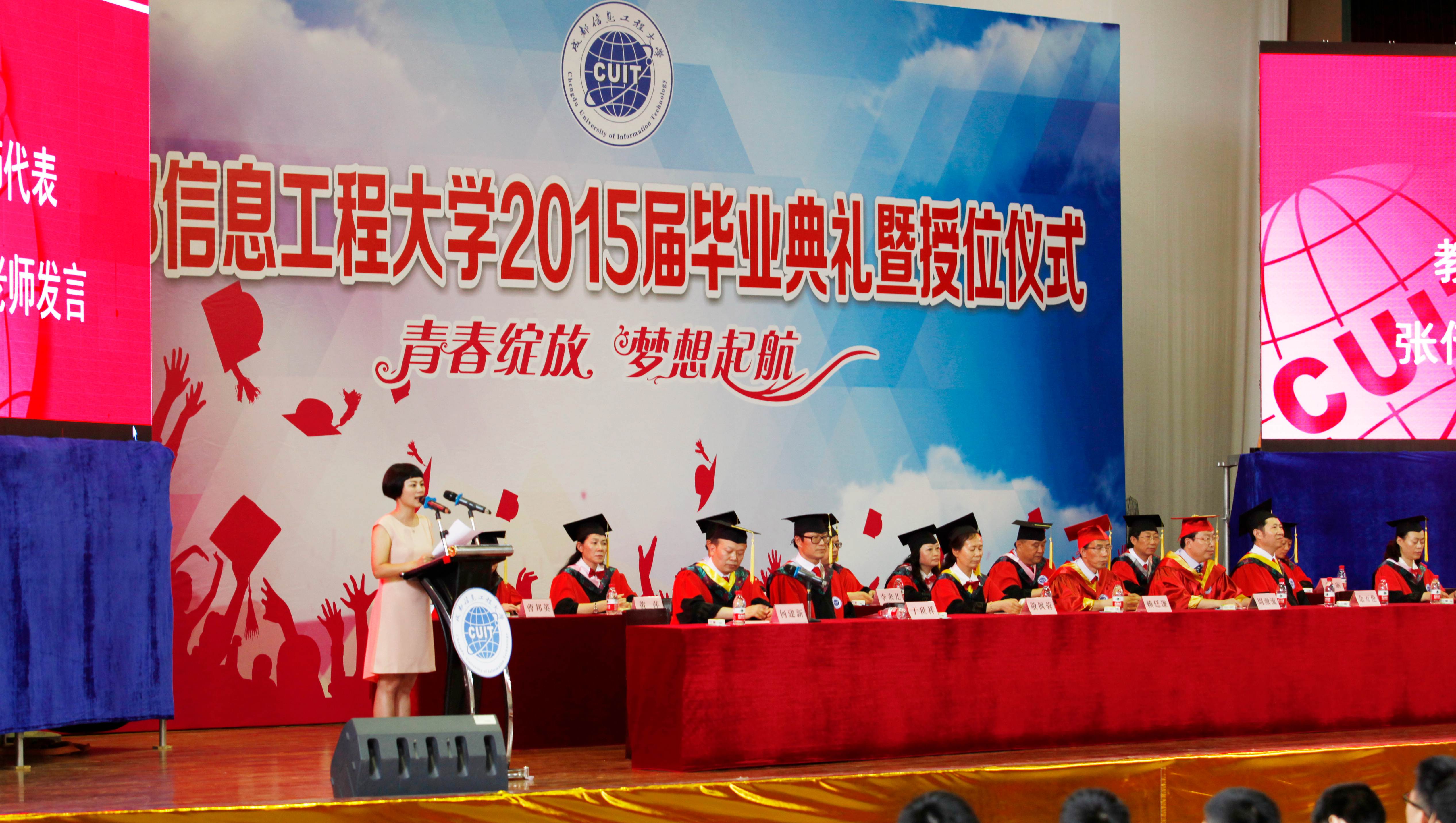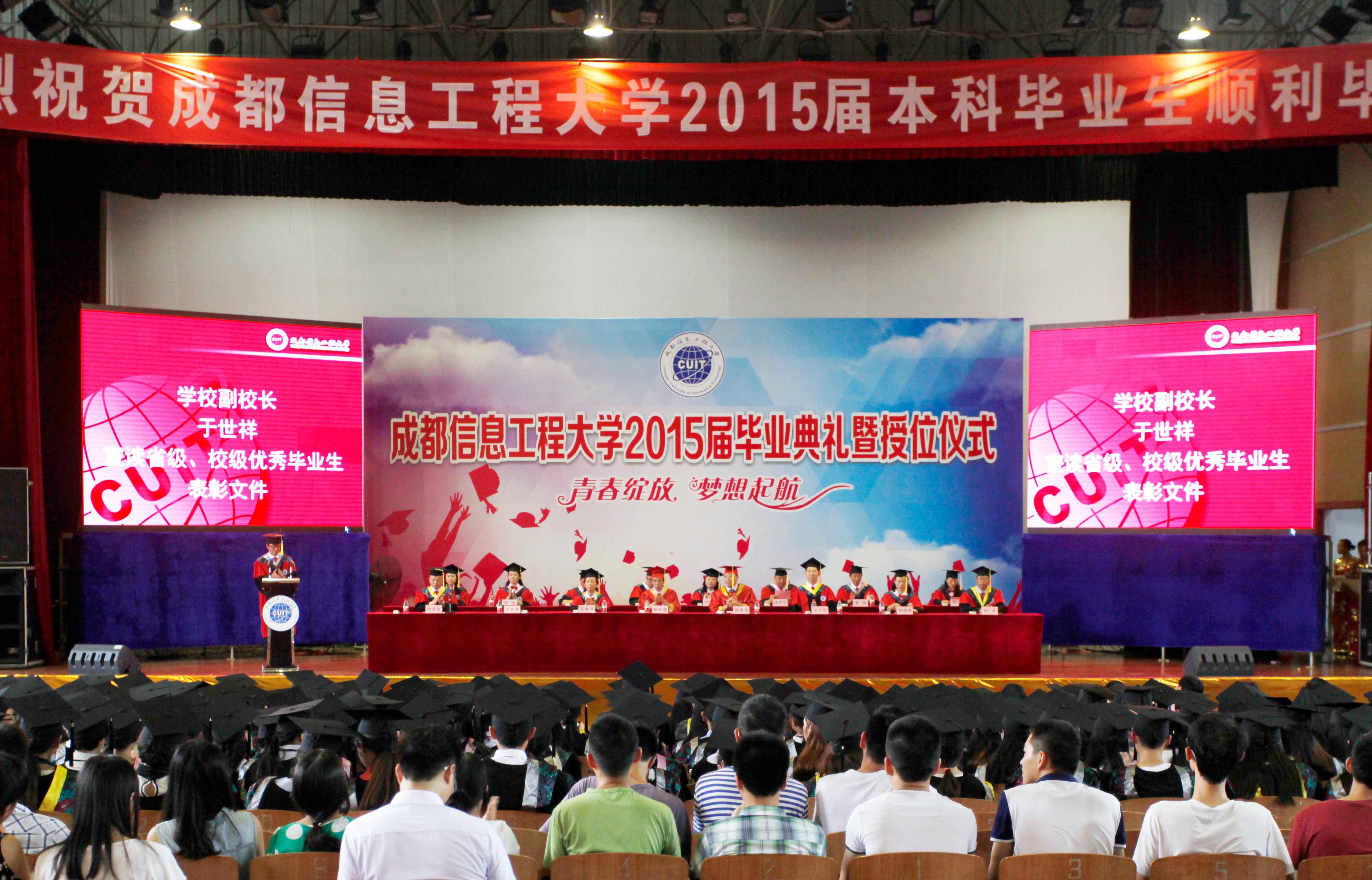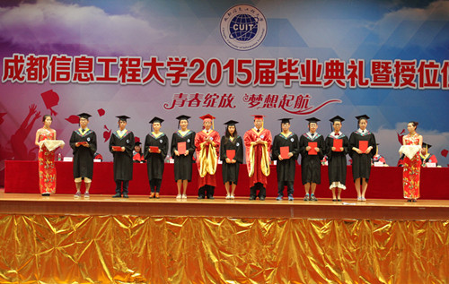 学校党委书记赖廷谦、校长周激流、党委副书记敬枫蓉、副校长余万伦、于世祥、贺盛瑜、向武、何建新,以及相关职能部门和学院负责人,2015届全体本科毕业生参加了毕业典礼。毕业典礼由何建新主持。