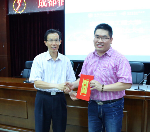 赖廷谦为孔令旭颁发了新媒体联盟顾问聘书。随后,校团委、大气科学学院、电子工程学院分别展示了新媒体工作中的特色和亮点、分享了他们的经验做法。