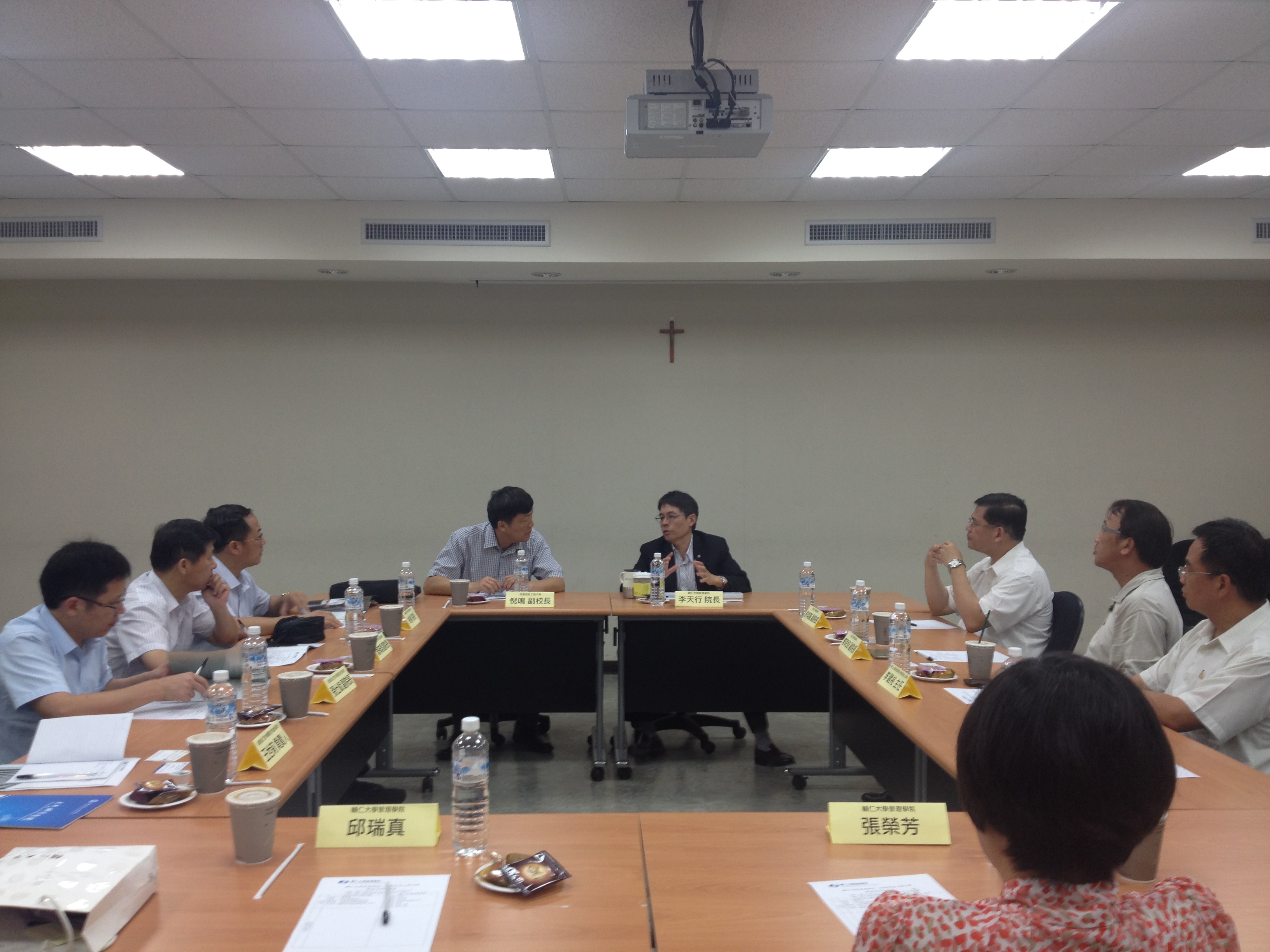 【本网讯】6月14日至20日,学校党委副书记倪鸣应邀率团赴台湾天主教辅仁大学、台北城市科技大学、台北科技大学、圣约翰科技大学、淡江大学和联合大学六所大学交流访问,访问期间分别和各台湾高校代表进行了座谈。乐动统计学院、大气科学学院、信息安全学院,国际交流与合作处相关人员随团访问。