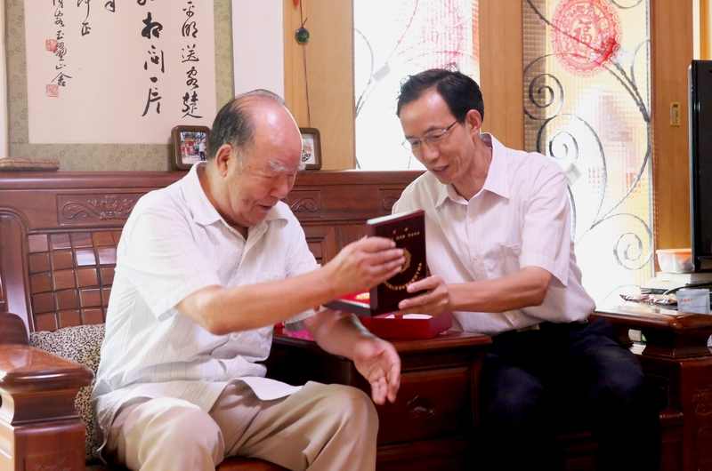 9月3日是中国人民抗日战争暨世界反法西斯战争胜利70周年纪念日。2日下午,校党委书记赖廷谦、副书记倪鸣代表学校走访慰问了乐动张玉昆、王明山、王维、许荣耀、张占义等抗战老战士老同志及王健同志的家属,按照中央和省委统一安排,向他们发放“中国人民抗日战争胜利70周年”纪念章,并代表全校师生向抗战老战士们致以崇高敬意和诚挚问候。