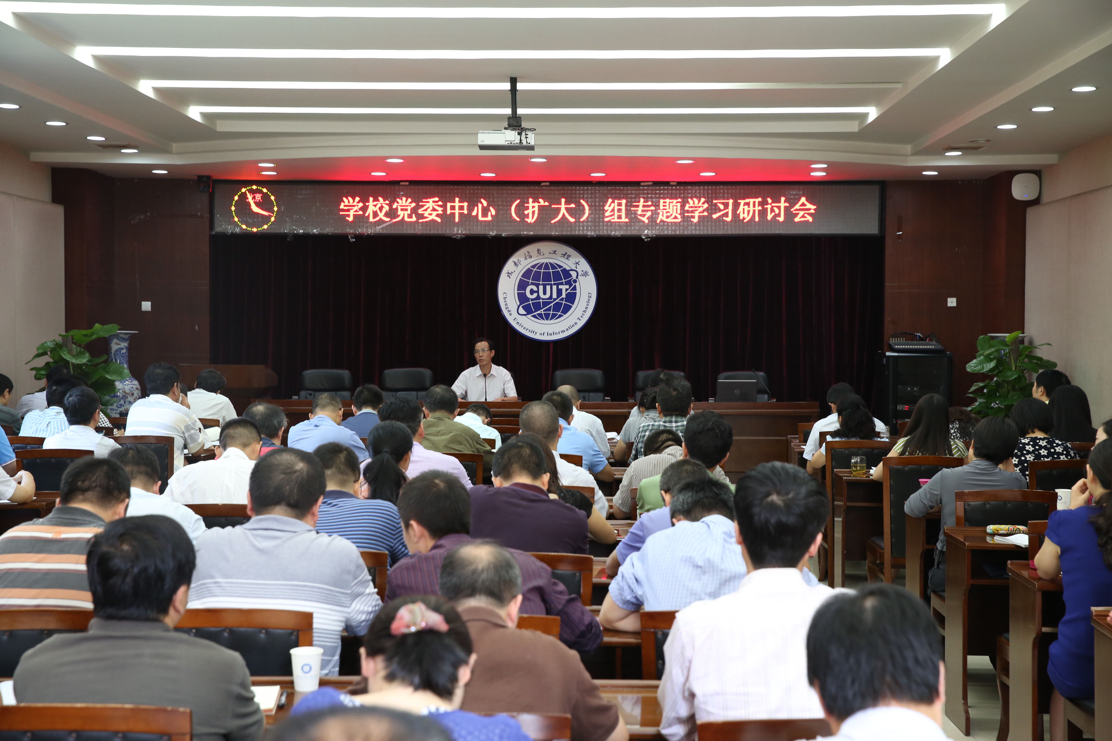 9月6日,学校党委中心(扩大)组专题学习研讨会暨“三严三实”第二专题学习研讨会在行政楼第一会议室举行。中共四川省委党校副校长裴泽庆教授应邀在会议上作 《坚定理想信念,严守纪律规矩,自觉践行“三严三实”》专题报告,全体中层以上领导干部参加了会议。会议由学校党委副书记倪鸣主持。