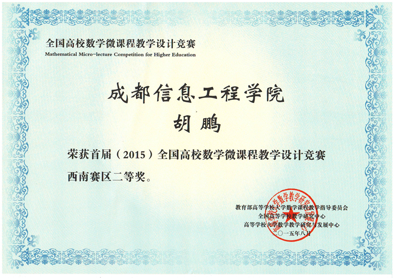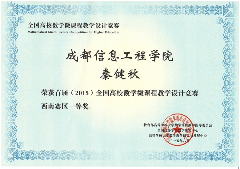 首届(2015)全国高校数学微课程教学设计竞赛分为赛区初赛和全国决赛两级,在赛区初赛中有来自四川大学、重庆大学、西南财经大学、电子科技大学、乐动在线登录、云南大学、云南财经大学、贵州大学、贵州师范大学等的高校教师参加高等数学、线性代数、概率论与数理统计三门课程的比赛。我院组织的4位教师参加了比赛,秦健秋老师的《高等数学》获一等奖、胡鹏老师的《经济数学》获二等奖。