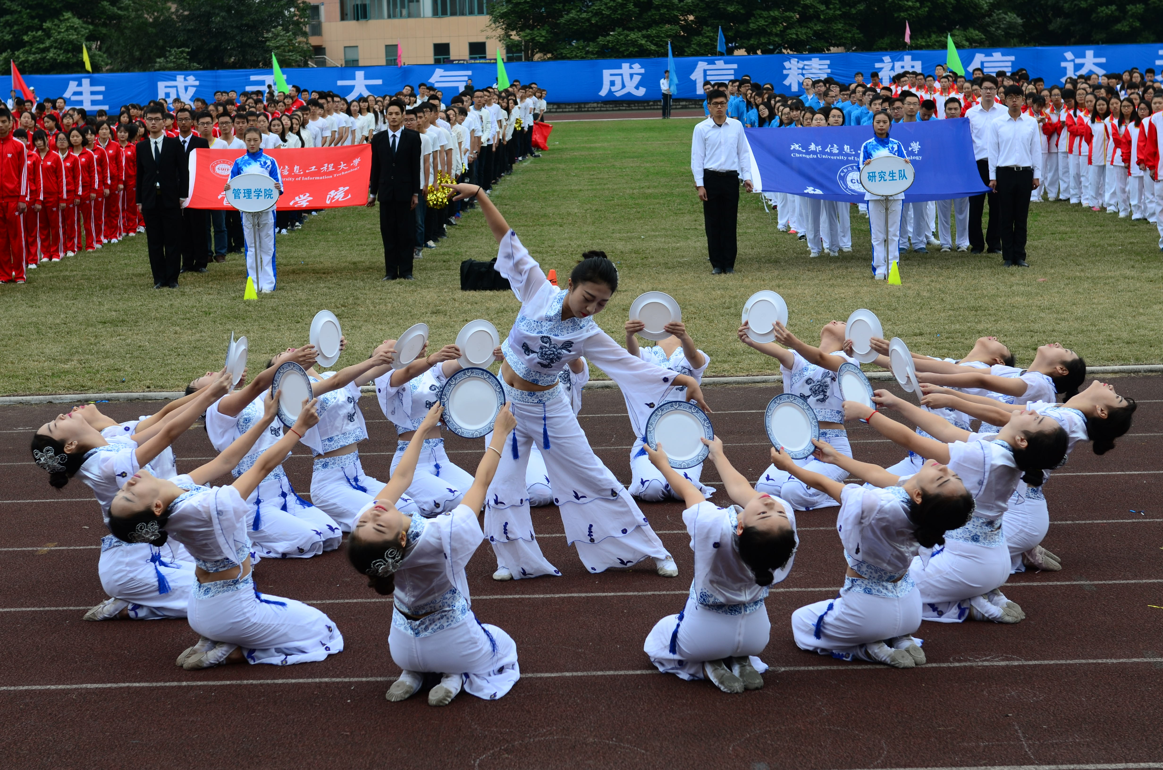 开幕式表演中,电子工程学院《动感青春》和管理学院《青花瓷》节目精彩上演,这两个节目均是今年乐动大学生体育节运动舞蹈大赛的优秀成果;国防生军体拳表演展示了乐动一道亮丽的国防绿;体育部《动起来,让我们一起来嗨》中的大刀武术、杂耍篮球、穿花跳绳、舞动空竹、跆拳道品势、网桌球舞、健美运动舞等,充分展示了乐动体育教学改革的丰硕成果。最后CUIT造型将开幕式气氛推向高潮,充分展现了成信学子良好的精神风貌和对学校的良好祝愿。