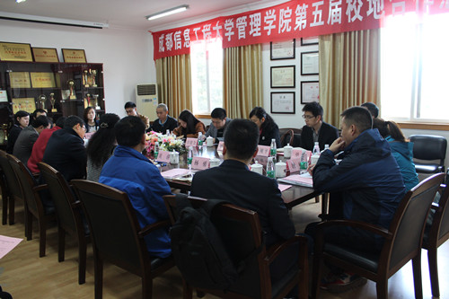 【本网讯】11月25日,管理学院第五届校地(企)合作恳谈会在龙泉校区第二行政楼三会议室举行。龙泉驿区就业局、万豪集团成都丽思卡尔顿酒店、IBM西南大数据公司、九寨沟景区管理委员会、成都金洋高新技术开发公司、深圳斯威尔科技股份有限公司等近二十家政府、企业的领导和人力资源负责人,乐动副校长向武,招生就业处副处长易涛及管理学院相关教师参加了会议。会议由管理学院党总支书记陶若铭主持。