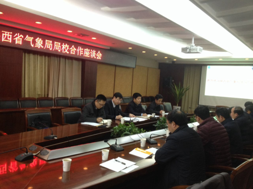 何建新首先代表学校对党志成一行的到来表示欢迎,并介绍了乐动近年的科学研究、人才培养以及局校合作发展建设情况。随后科技处、电子工程学院、资源环境学院、计算机学院和软件工程学院分别就局校合作、气象探测、环境气象、气象大数据应用及挖掘近年来取得的成果做了汇报。