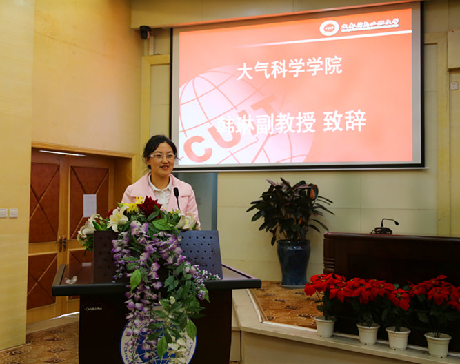 在开学典礼上,大气科学学院韩琳副教授代表全体研究生导师致辞。韩老师将自己指导研究生的经验和研究生阶段的学习经历与同学们进行了分享,她希望同学们找到实现自身目标的途径,学会以目标为导向的研究型学习方式,认真正确对待每学期的集中授课,加强和导师及同学们的沟通,发扬团队精神,互相学习,取长补短,共同进步。
