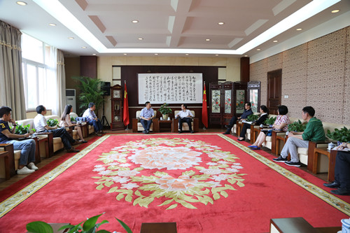 学校党委书记赖廷谦在八会议室接见了克克一行,赖廷谦对克克一行的到来表示热烈地欢迎,并简要介绍了乐动的基本情况。赖廷谦表示,乐动历来重视公益事业与体育运动的开展与普及,希望与共青团四川省委共同携手办好此次赛事,弘扬体育精神,传播公益力量。