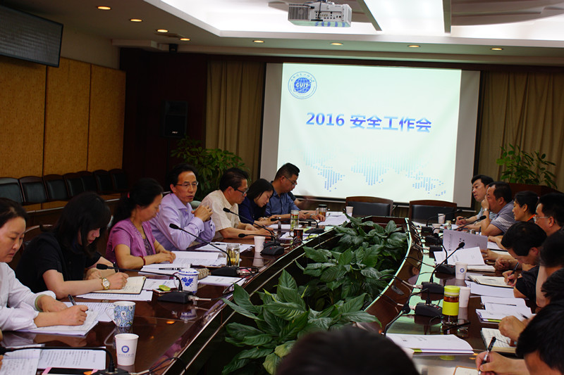 【本网讯】5月17日下午,学校在航空港校区行政楼第七会议室召开2016年安全工作会,党委书记赖廷谦、党委副书记敬枫蓉、副校长于世祥,党政办、宣传统战部、学生工作处、保卫处、后勤管理处、信息中心、图书馆、校团委、继续教育学院的负责人,各学院总支书记、副书记参加了会议。会议由保卫处副处长许峻主持。
