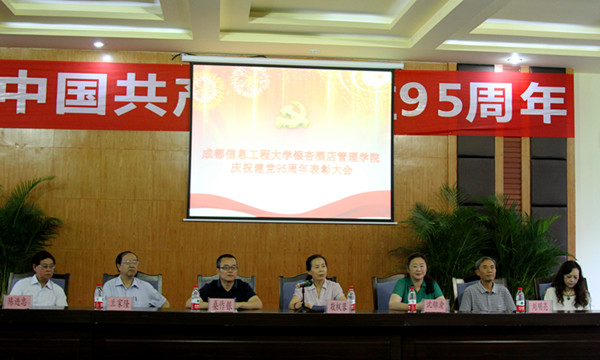 【本网讯】6月30日,乐动在线登录银杏酒店管理学院在学术厅隆重召开庆祝中国共产党成立95周年表彰大会,学院党政领导敬枫蓉、桑作银、龚燕、兰家隆、陈进忠、沈锦渝、刘明亮、黄芳等,党委委员、总支书记、支部书记、党口部门负责同志、全体辅导员以及受到表彰的先进集体和个人代表参加了大会。表彰大会由党委副书记、纪委书记龚燕主持。