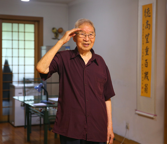 采访中,老人回顾了当年爬雪山、过草地的艰苦岁月,说到亲人和战友的牺牲,数度哽咽。老人情深之处提笔写了“红军战士邓忠德”几个大字,并向祖国和人民行了一个军礼。