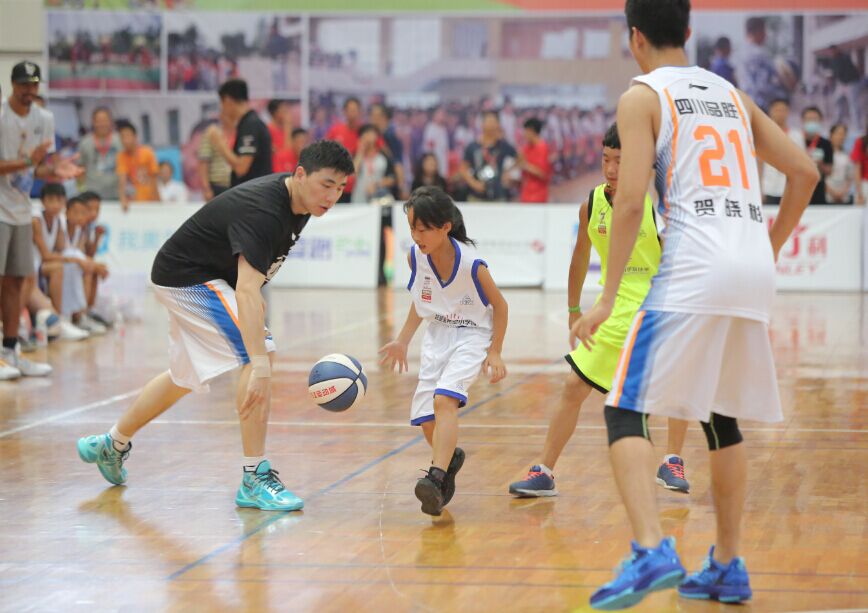 【本网讯】7月24日上午,乐动体育馆举行了一场精彩而又特殊的篮球表演赛,这场精彩的篮球赛由CBA冠军球队、四川金强队队员和来自全省希望小学的30名小球员共同完成。随着这场精彩的表演赛的结束,2016姚基金希望小学篮球季四川省季赛也圆满落幕。