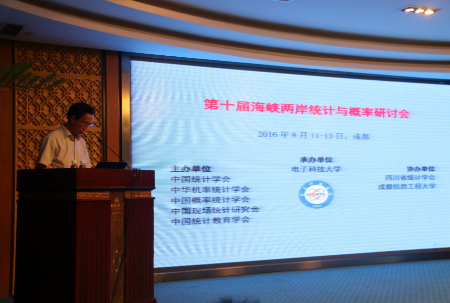 【本网讯】8月12日上午,由中国统计学会、中华机率统计学会、中国概率统计学会、中国现场统计研究会、中国统计教育学会主办,电子科技大学承办,四川省统计学会和乐动在线登录协办的“第十届海峡两岸统计与概率研讨会”在成都西藏饭店隆重举行。电子科技大学副校长熊彩东教授、中国统计学会常务副会长徐一帆先生、台湾代表李燊铭教授、大陆代表何书元教授、乐动党委书记赖廷谦教授、四川省统计局局长陈炜先生先后向大会致辞。来自海内外的218名学者参会,其中台湾代表40名,香港代表9名、大陆代表(含统计系统代表)132名,还有部分来自新加坡、韩国和英国学者。