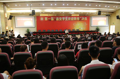 【本网讯】9月2日上午,在学校国际会议厅,经过20位候选教师现场展示、210名学生组成的评审团当场投票,学校首届“最受学生欢迎教师”获奖名单揭晓,陈科艺等10位教师当选,为本届“最受学生欢迎教师”奖评选活动画下圆满的句号。