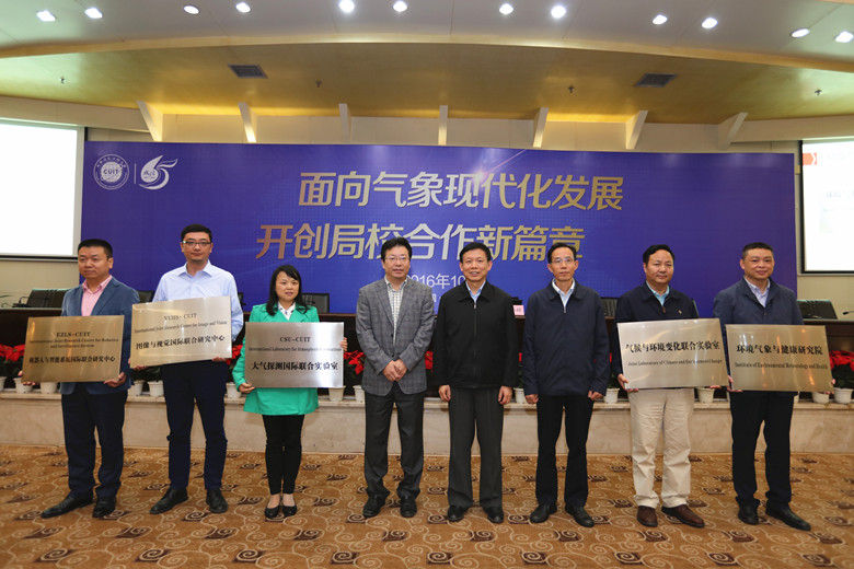 报告会后,许小峰副局长和赖廷谦为大气探测国际联合实验室、图像与视觉国际联合研究中心、机器人与智能系统国际联合研究中心、气候与环境变化联合实验室、环境气象与健康研究院颁牌。随后,许小峰一行在校领导的陪同下参观并指导了乐动大气科学学科群建设工作。
