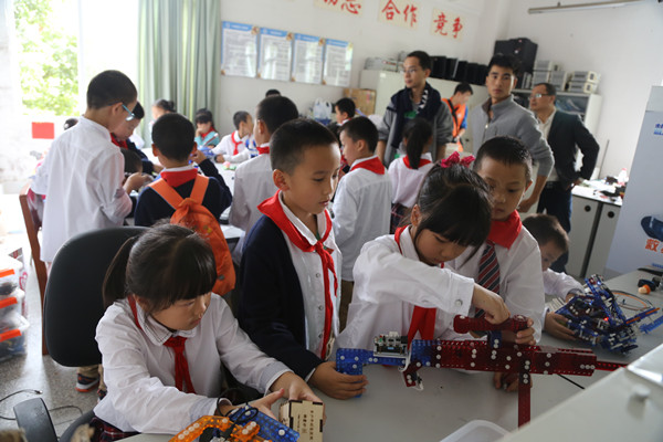 在大气观测场,小学生们近距离接触并了解了气象观测仪器的构造和作用,以及气象要素采集过程。在气象实习台,小学生们感受了天气会商,了解到了气象工作者是如何进行天气预报。在环境科普基地,小学生们测试了水质的酸碱性、探寻了人工湿地的奥秘。在控制工程学院创新实验室展区,小学生们与NAO机器人对话、共舞,亲自操控智能小车,观看低空航模表演和花式航模表演,乘坐无人驾驶汽车,充分感受了智能生活。在“青少年创客空间”,小学生们使用黏土动手制作了自己喜爱的玩具……