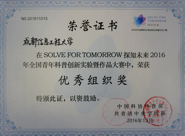 【本网讯】近日,由中国科协、共青团中央主办,中国科学技术馆、中国科协青少年科技中心承办,中国三星独家赞助的“SOLVE FOR TOMORROW探知未来2016年全国青年科普创新实验暨作品大赛”颁奖典礼在北京中国科技馆隆重举行,凭借20余支团队的较好创意作品,乐动被授予活动“优秀组织奖”。