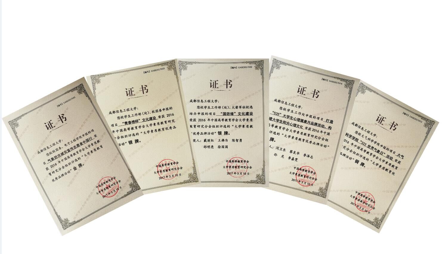 论坛开幕式上公布了2016年大学素质教育优秀品牌活动评选结果并进行了颁奖。全国共有135个项目分别获得金、银、铜牌,乐动团委、电子工程学院申报的“气象防灾减宣传志愿者中国行”荣获金牌;学生工作处、校团委申报的“青春榜样文化建设”和学生工作处、火箭军驻校选培办申报的“国防绿文化建设”荣获银牌;学生工作处申报的“打造5.25大学生心理健康月品牌活动,构建大学生阳光心理文化”和大气科学学院申报的“大气科学学院3.23世界气象日活动”荣获铜牌。