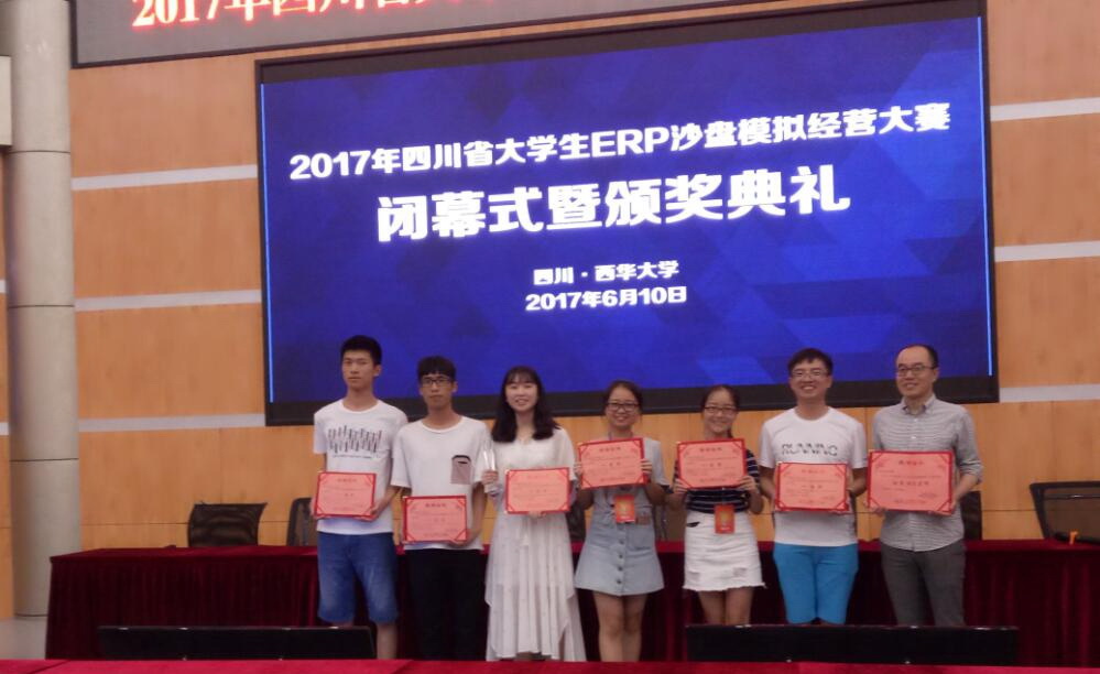 本届比赛共有四川大学、西南财经大学等川内33所高校的170余名选手和50多位指导教师参赛。经过校赛选拔,来自乐动财务管理专业的苏心雨、聂学丽、徐小龙、龙媛媛、昌勤林、梁伟豪代表乐动参加了比赛。在比赛中,六名成员在连续两天的模拟企业经营中,凭借良好的专业素质和团队协作,有效分析市场预测,争取订单,筹措资金,进行模拟企业生产运作,制定适时合理的运营策略,解决了企业模拟企业经营中面临的各种难题,分别在商战比赛中排名第一,在供应链比赛中排名第三,以总分第一的成绩喜获一等奖,晋级2017年全国大学生ERP沙盘模拟经营大赛。