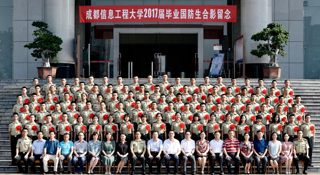 会前,全体毕业国防生与学校领导、老师在图书馆门前合影留念。
