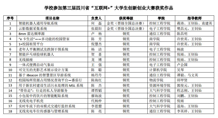 学校参加第三届四川省“互联网+”大学生创新创业大赛获奖作品