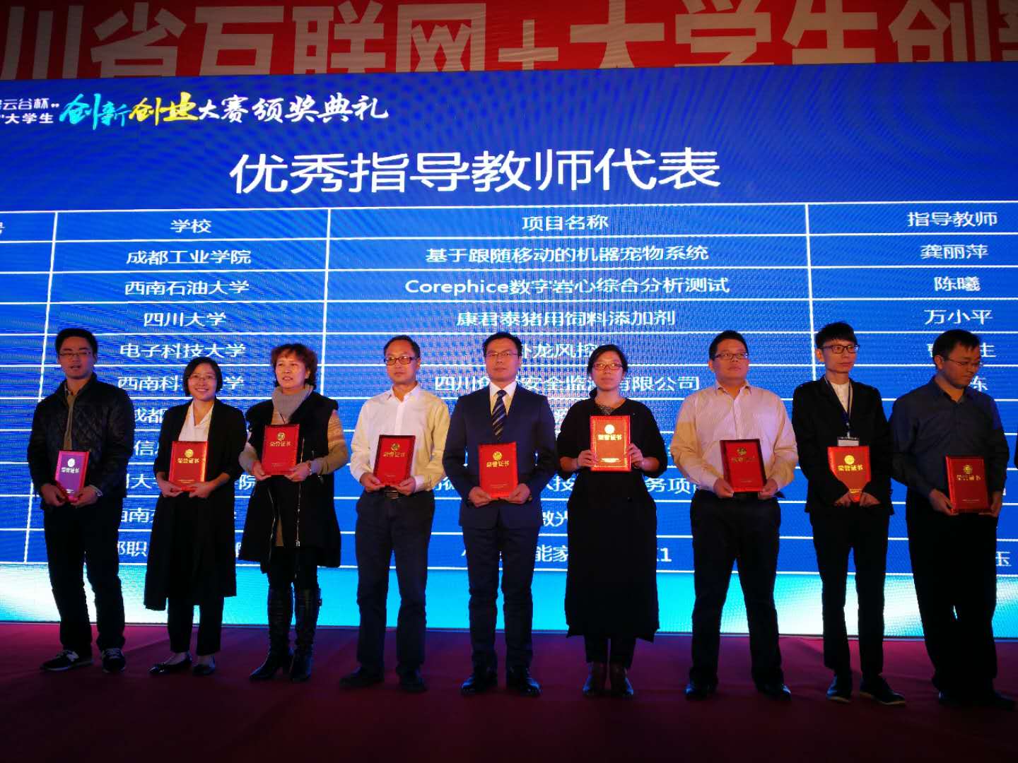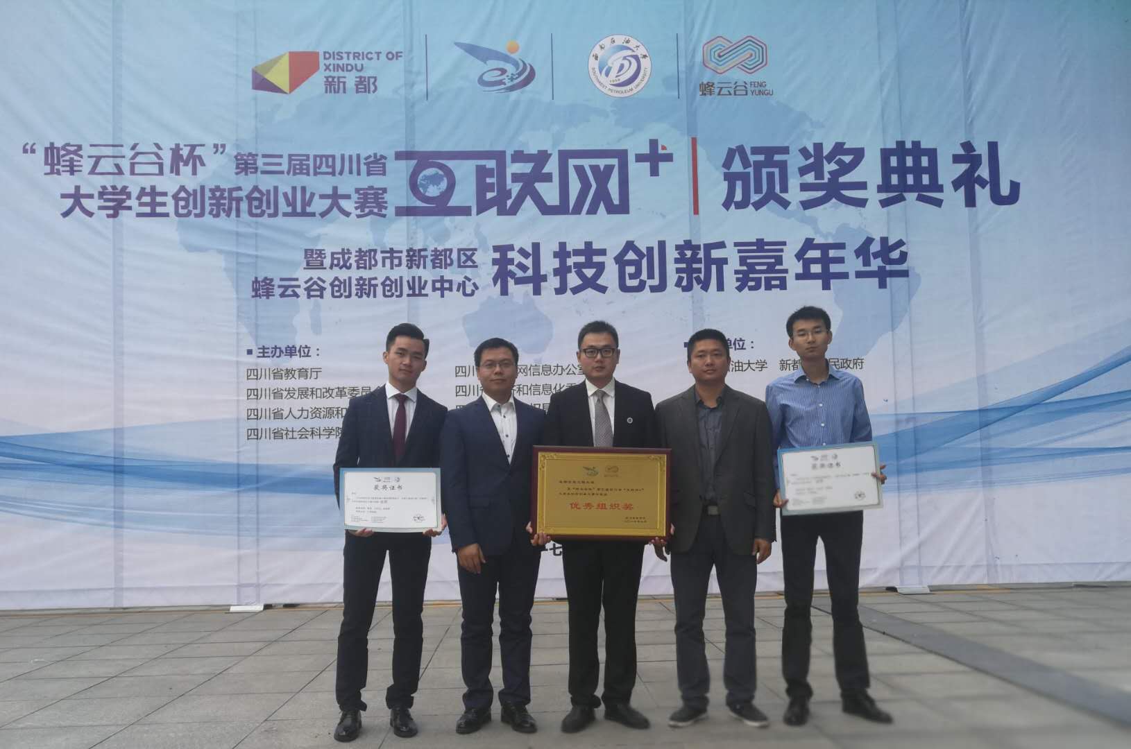 【本网讯】10月13日上午,第三届四川省“互联网+”大学生创新创业大赛颁奖典礼在新都区蜂云谷创新创业中心隆重举行。学校副校长于世祥,教务处、校团委相关负责人及获奖师生代表参加了颁奖典礼。由于在大赛组织工作中表现突出,乐动被授予第三届四川省“互联网+”大学生创新创业大赛“优秀组织奖”,蒋涛、樊昌元、王钊仙、厉威成四位老师被评为优秀指导教师。
