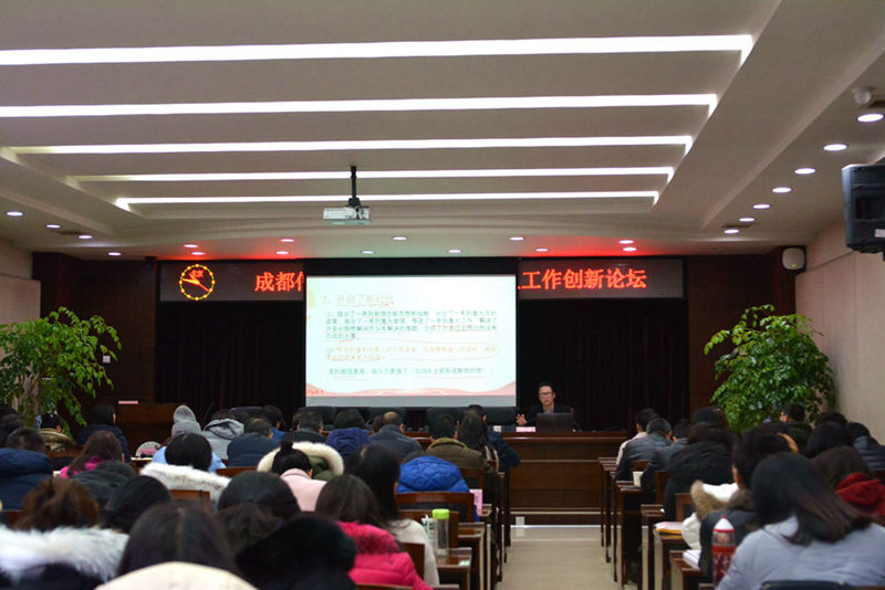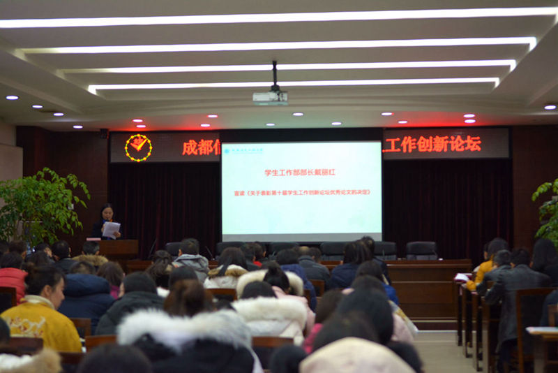 【本网讯】为深入学习贯彻党的十九大会议精神,贯彻落实中共中央、国务院《关于加强和改进新形势下高校思想政治工作的意见》、教育部《普通高等学校辅导员队伍建设规定》和学校2017年党建及思想政治工作会议精神,进一步推进新形势下乐动学生工作,加强和改进大学生思想政治教育,创新学生工作的理论与实践,1月10日上午,学校在行政楼一会议室召开第十届学生工作创新论坛。学校副校长于世祥,相关职能部门负责人,各学院党总支书记(副书记),全体辅导员老师等约150余人参加了论坛。论坛由学生工作部部长戴丽红主持。