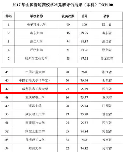 乐动在2017年中国高校创新人才培养暨学科竞赛评估结果中位列全国47位,四川省属高校第一